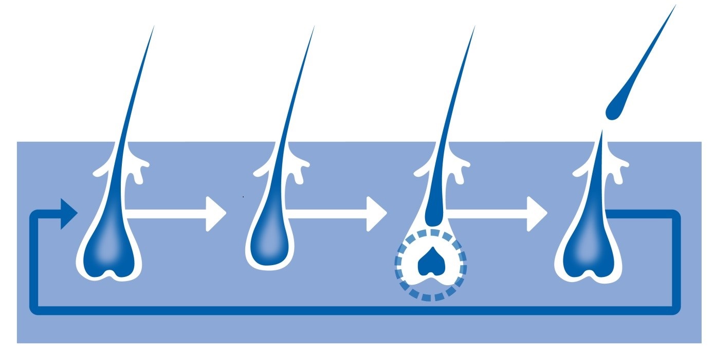 Jedes Haar auf unserem Körper durchläuft beim Haarwachstum drei Phasen: die Wachstumsphase, die Übergangsphase und die Ruhephase. Unsere Haare befinden sich unabhängig voneinander in einer der drei Phasen. So erneuert sich das Haarkleid ständig von selbst: Jeden Tag wachsen uns neue Haare, andere fallen aus.